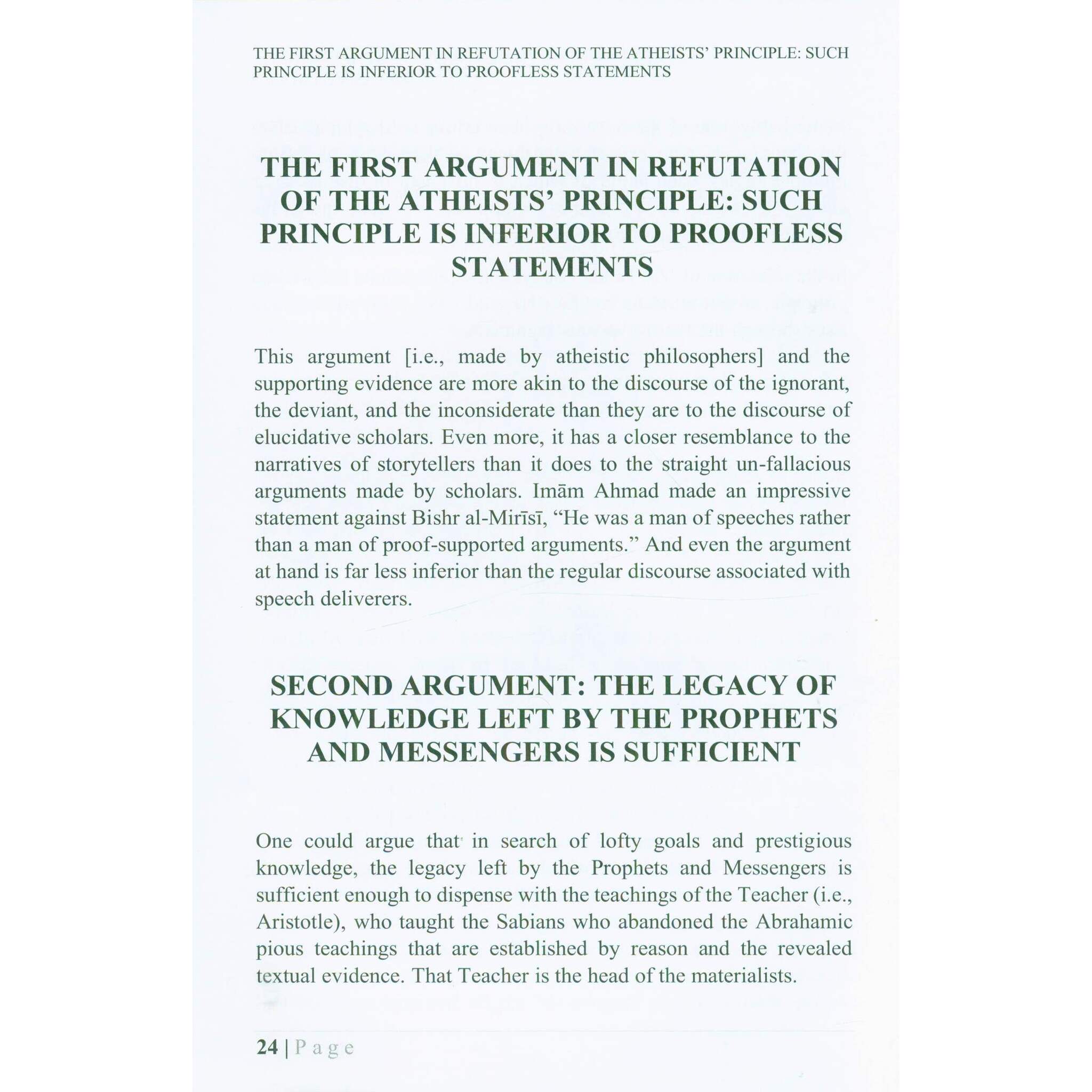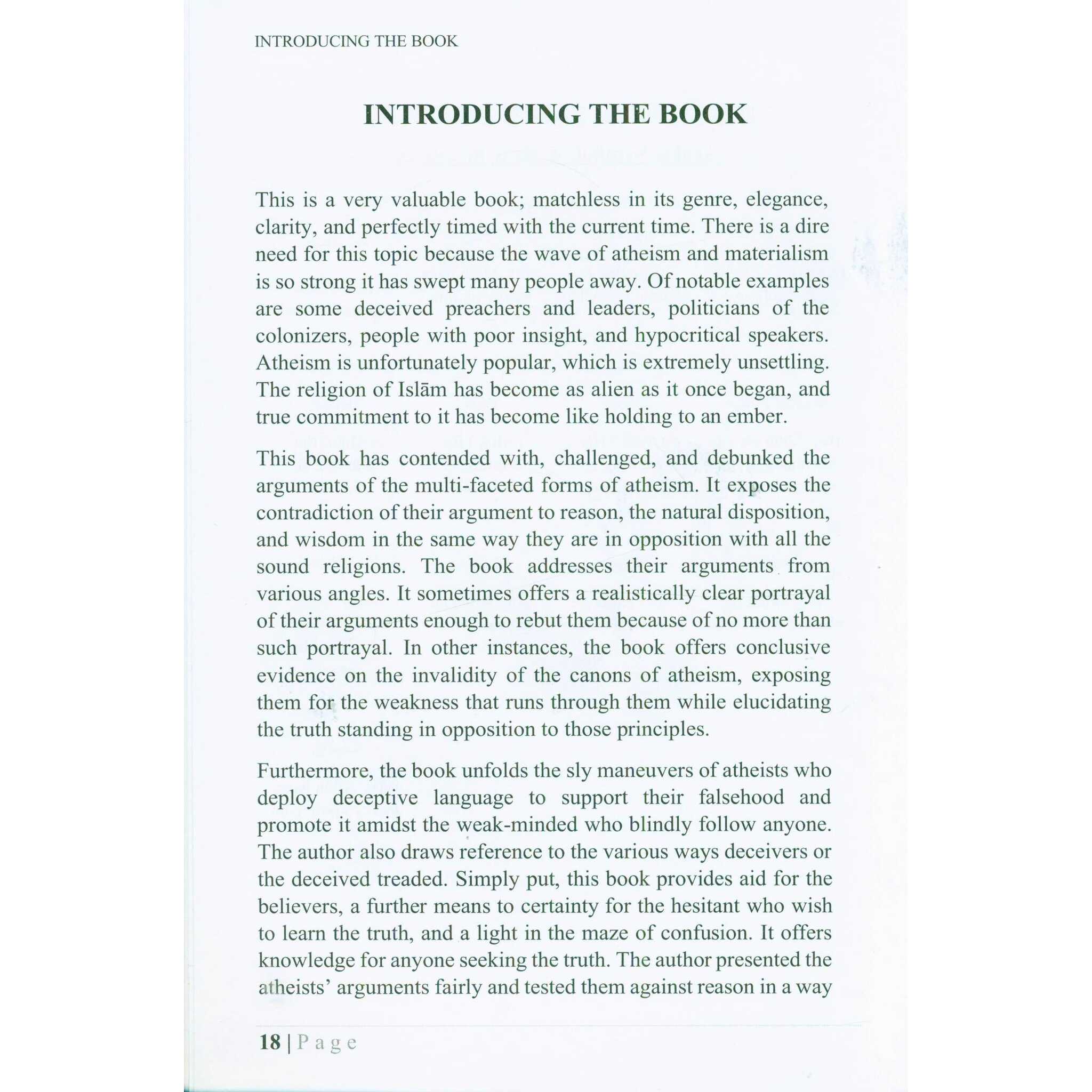 This work effectively tackles and refutes atheists' diverse arguments. It reveals the flaws in their logic, their resistance to natural urges, and the wisdom that contradicts their erroneous ideals. The author approaches their points from several angles. Sometimes the book depicts their arguments realistically, which is enough to refute them. At times, it gives irrefutable proof to demolish the canons of atheism, revealing their inherent flaws while presenting the truth that contradicts those beliefs.
