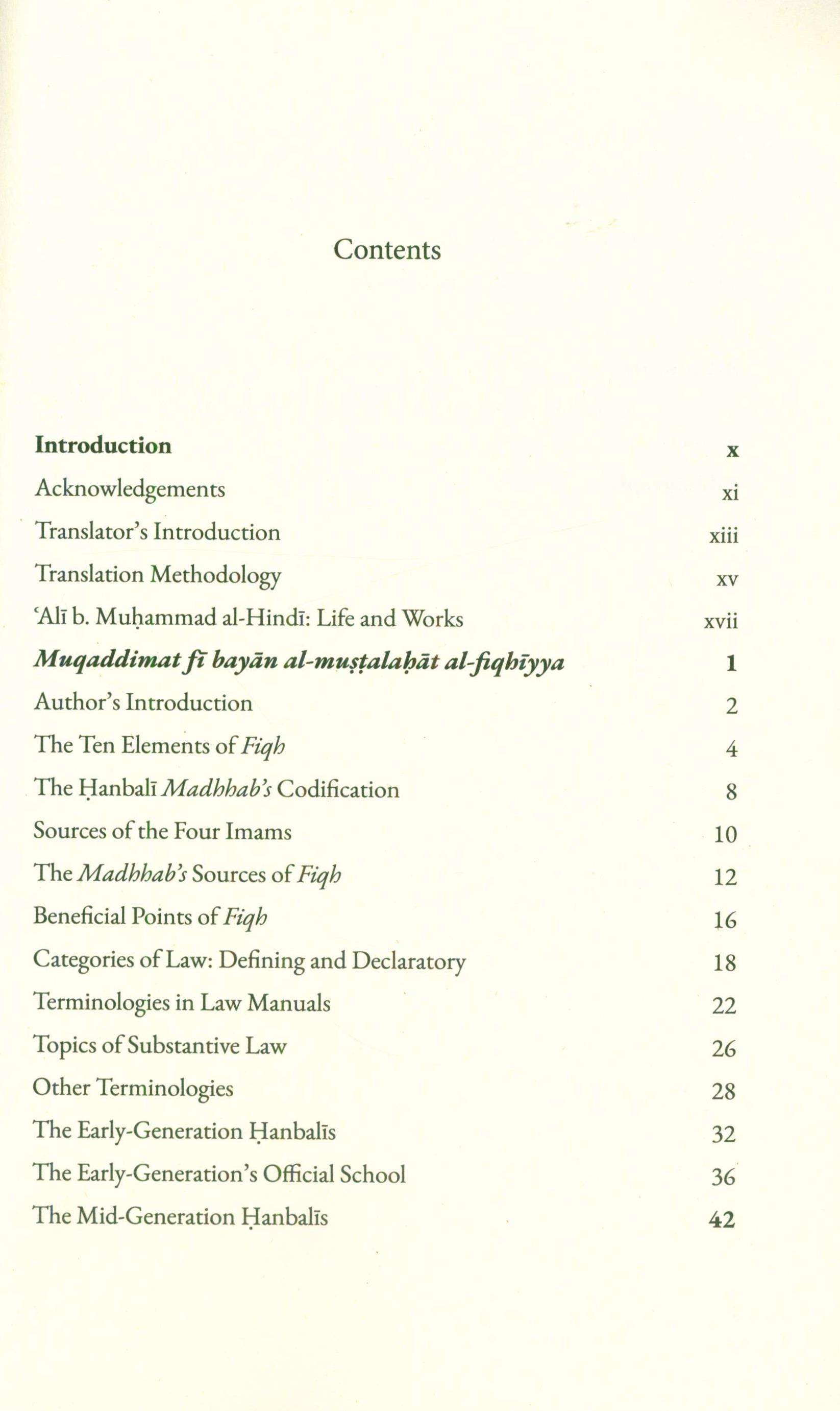 Throughout time, scholars of various Islamic sciences used technical terminologies in their works. Scholars from all four law schools wrote numerous works on legal terminologies (al-muştalabat al-fiqhiyya) and on idioms of their jurists (lughat al-fuqaha). This book presents a translation of 'Ali b. Muhammad al-Hindi's (d. 1419/1998) Muqaddimat fi bayan al-mustalahat al-fiqhiyya on Hanbali fiqh terminologies. The work furthermore serves as a Hanbali biographical dictionary (tabagat) and a historical document which shows how the scholars of different generations determined the 'official' opinions for the Hanbali school. It is hoped the translation, An Overview of Hanbali Terms, Scholars, and Works helps one to understand basic legal terms, and appreciate the immense contributions of the past scholars. It is the first time a work of this sort is being presented to the English readers. This bilingual edition with its parallel Arabic text will allow readers to easily access the original Arabic and hopefully help with vocabulary building, oracy, and future translations. An addendum titled, The Later-Generation and the development of the Mu'ramad opinions has been included to shed further light on the concept of 'official' opinions among the later-generation Hanbali scholars.