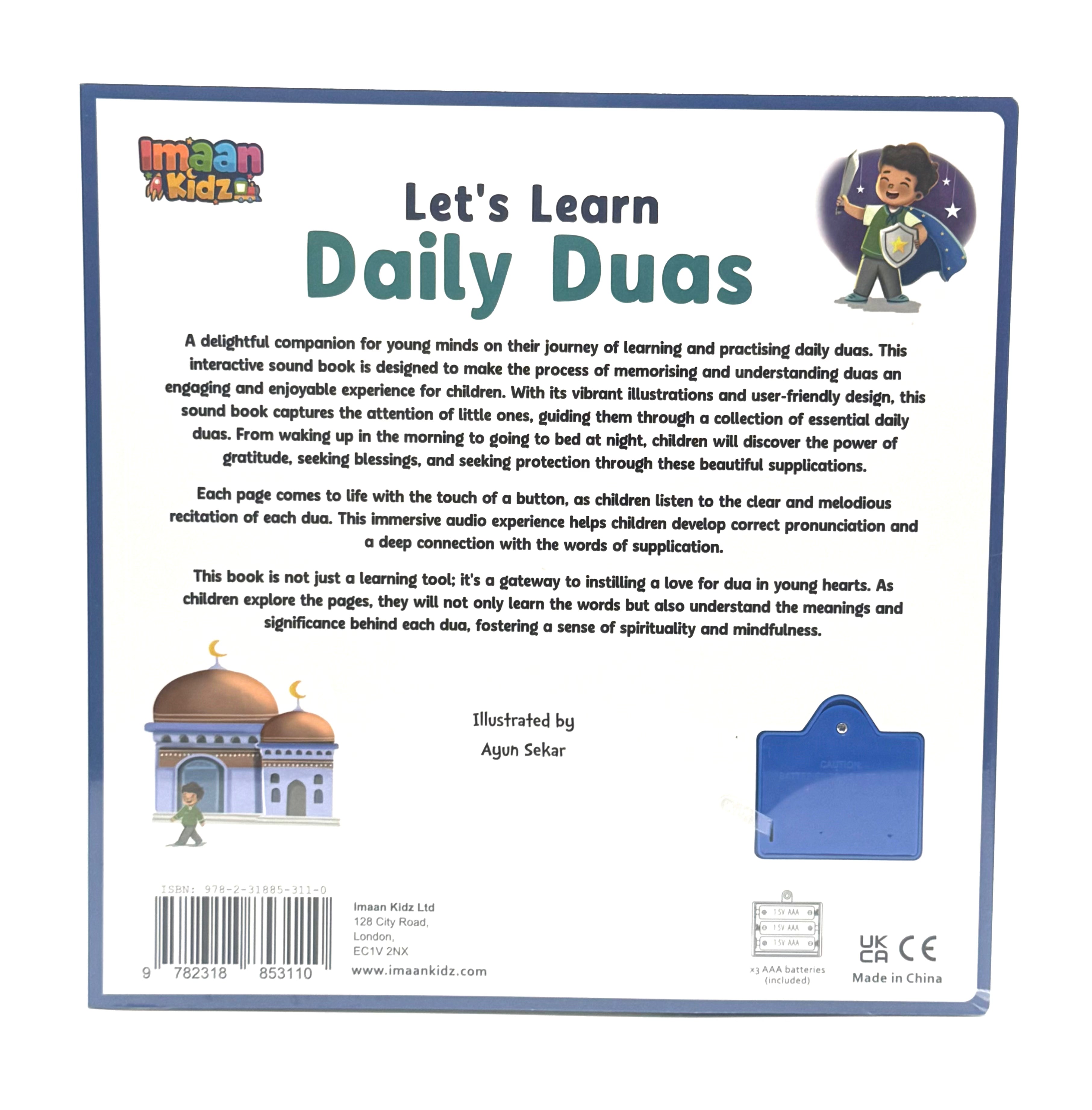 Each page comes to life with the touch of a button, as children listen to the clear and melodious recitation of each dua. This immersive audio experience helps children develop correct pronunciation and a deep connection with the words of supplication.