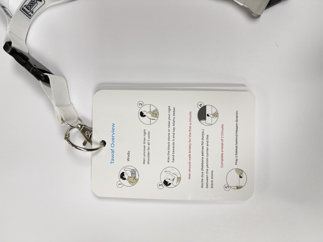 PORTABLE & LIGHTWEIGHT DESIGN – Compact flash cards secured with a binding ring and lanyard, making them easy to carry and use during Tawaf, Sa’i, and daily remembrance.